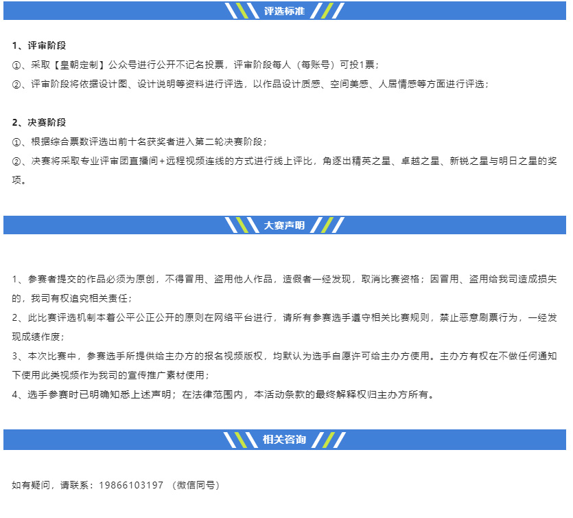 即日起,大赛面向皇朝定制总部及终端设计师发出邀约,邀您一同用设计定制美好生活,用非凡空间点亮理想生活。