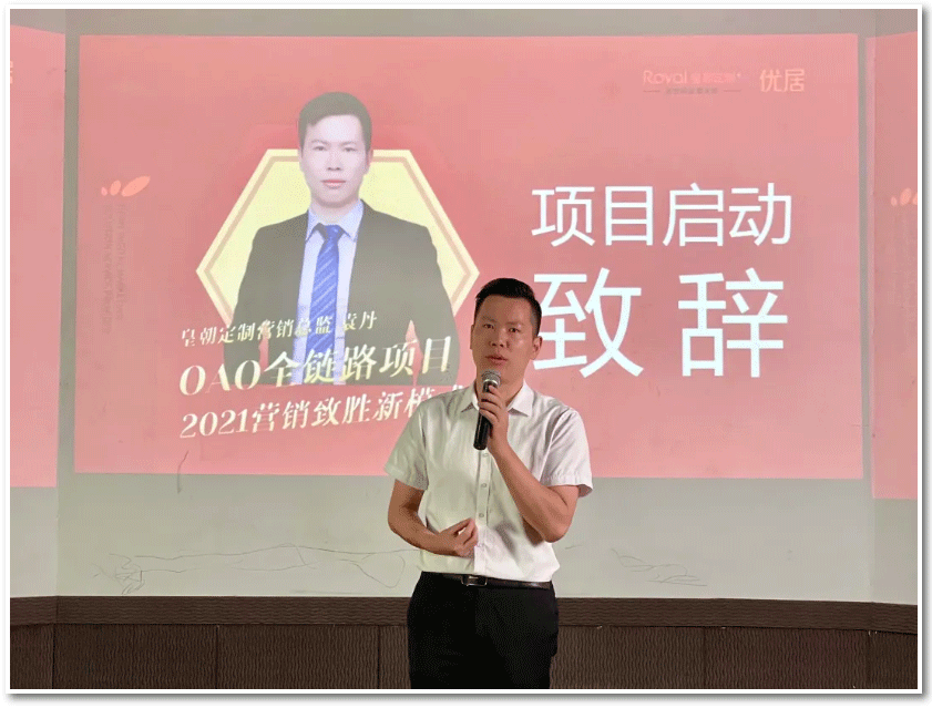 袁总给经销商家人们带来皇朝定制新的营销策略分享。“渠道重构”是皇朝定制未来发展的重要板块,重点聚焦在线上营销和拎包模式。皇朝将以最高规格踏上新零售赛道,建立覆盖全网络产品矩阵,完善数字化营销体系。从全链路数据应用,智能广告投放,客户服务管理等板块打造OAO全链路数字化新零售,为皇朝营销板块插上翅膀。