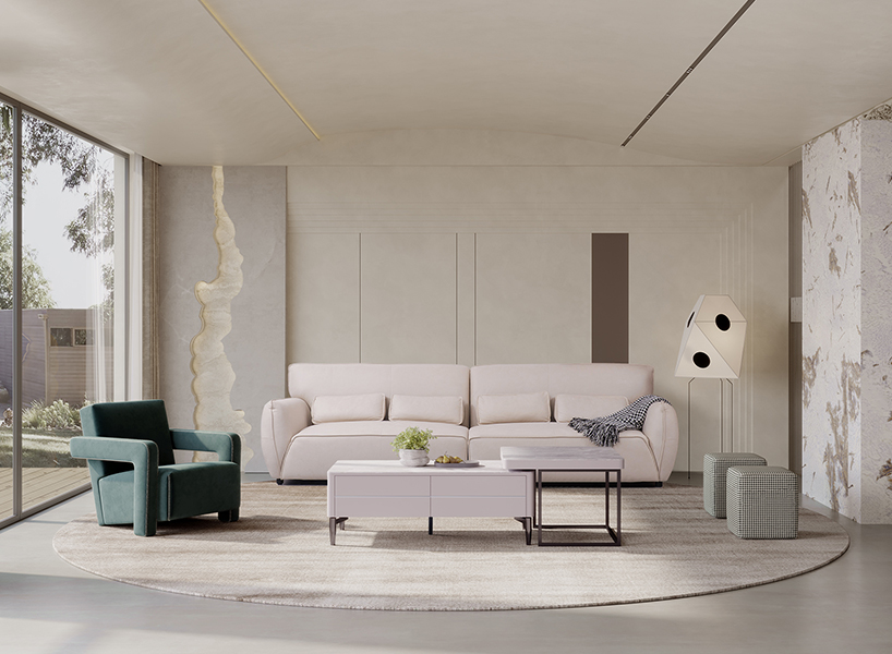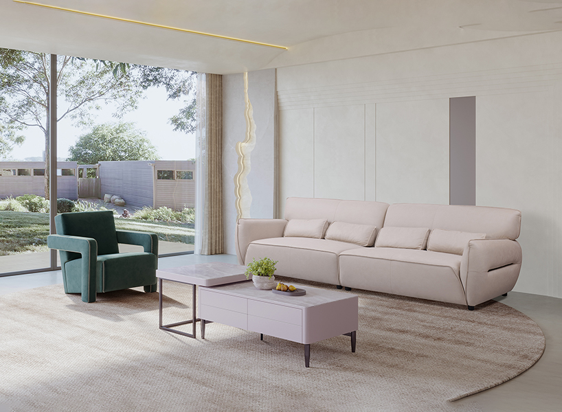 2.将皮/布艺、岩板、玻璃、金属巧妙搭配,尽享家居时尚工艺品质