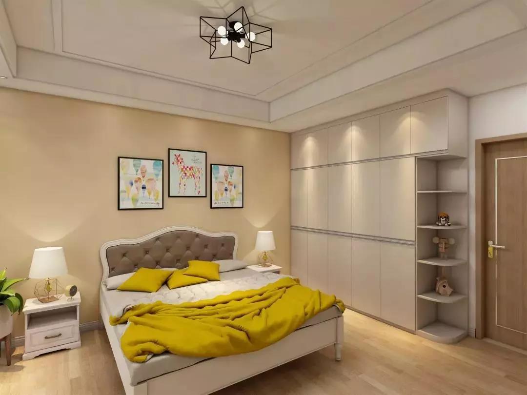 卧室也是一样的,除主吊灯外,可以添加床头阅读灯、地脚灯、衣橱里的感应灯等等点光源进行配合。
