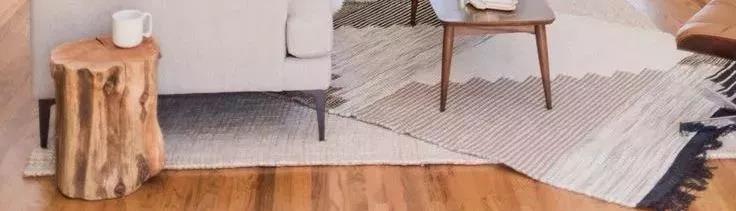 很多家居美图,会放两块叠加的地毯来增加住宅层次感的设计,美是美了,但要放在家里,一定要考虑好下面这个问题。