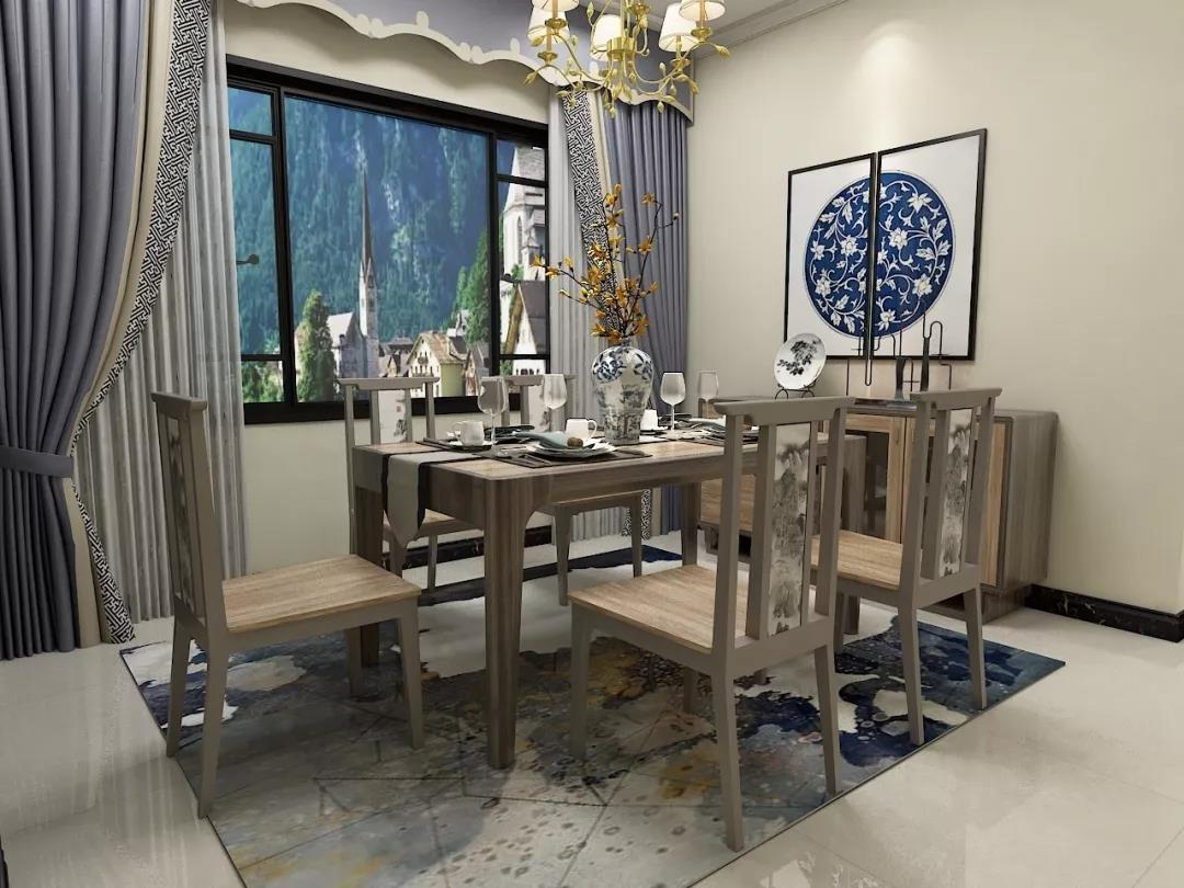 素雅的冰川灰,结合线条立体的木质桌椅,以其强大的表现力增强居室的装饰效果。灰蓝色的窗帘与明黄的吊灯,清浅的冷暖色泽交融,援引着源源不断的轻柔诱惑。