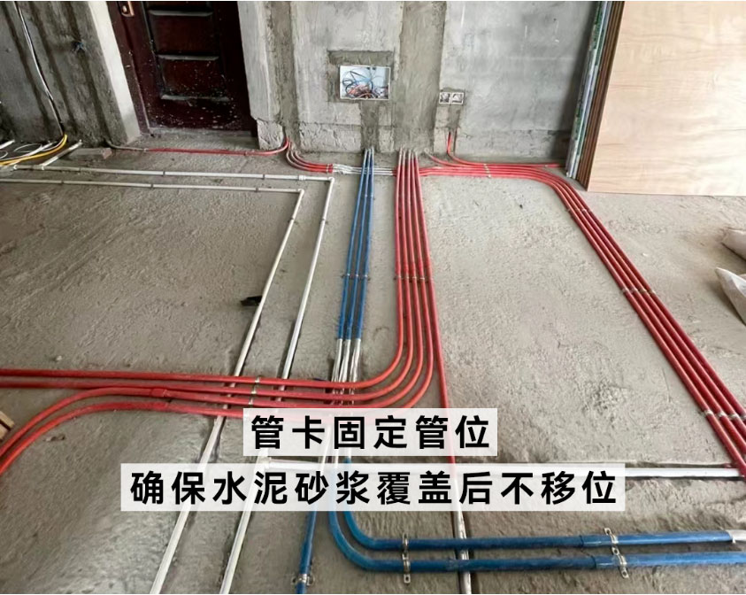 01、管卡固定水电管线管位,确保水泥砂浆覆盖后不移位。而且水管在使用时会产生共振,使用管卡固定可以达到加固的作用;转角、水表处以及管道终端也需要设置管卡,以防止水管移位,容易造成接头松脱而漏水的问题。